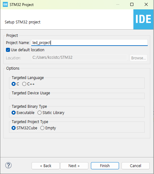 이제 Empty Project 말고 STM32CubeIDE에서 제공하는 것을 이용해서 개발을 진행한다.