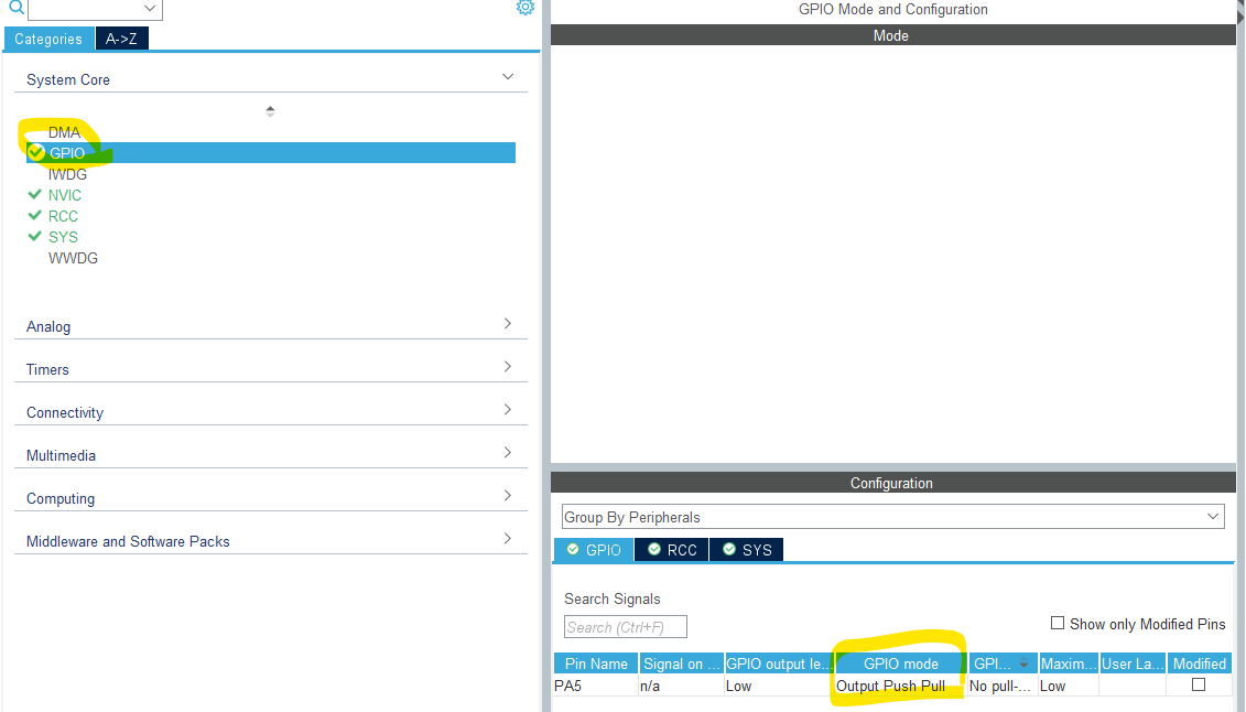 다음과 같이 GPIO를 설정한다: