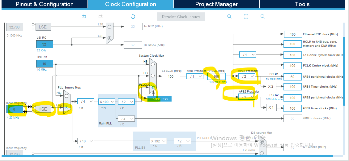 - HSE를 8MHz로 설정