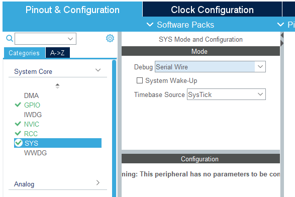 - 디버깅 설정: Serial Wire Debug 인터페이스 설정